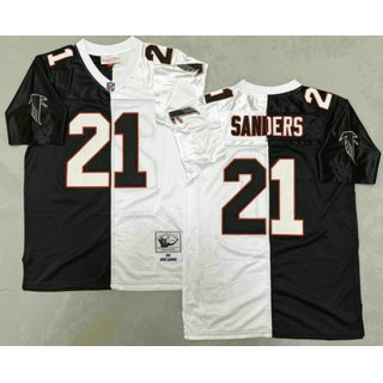 Men's Atlanta Falcons #21 Deion Sanders Black White Split 1992 Throwback Jersey