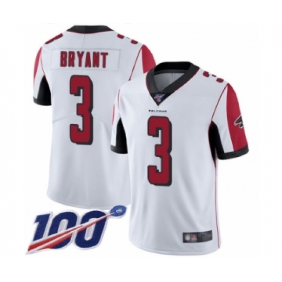 >Men's Atlanta Falcons #3 Matt Bryant White Vapor Untouchable Limited Player 100th Season Football Jersey