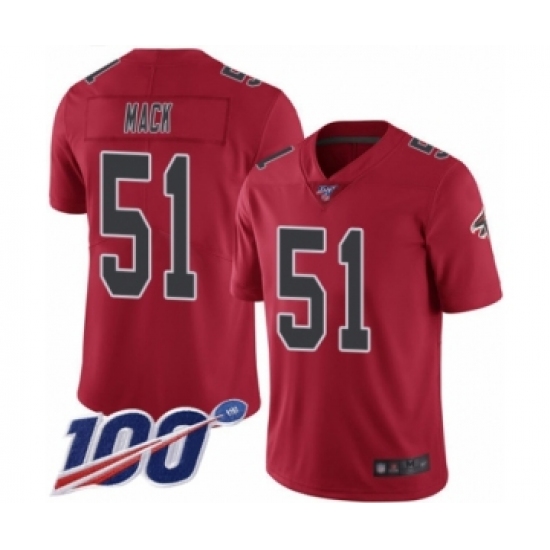 >Men's Atlanta Falcons #51 Alex Mack Limited Red Rush Vapor Untouchable 100th Season Football Jersey