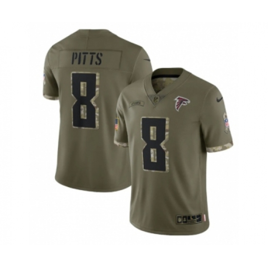>Men's Atlanta Falcons #8 Kyle Pitts 2022 Olive Salute To Service Limited Stitched Jersey