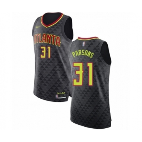>Men's Atlanta Hawks #31 Chandler Parsons Authentic Black Basketball Jersey - Icon Edition