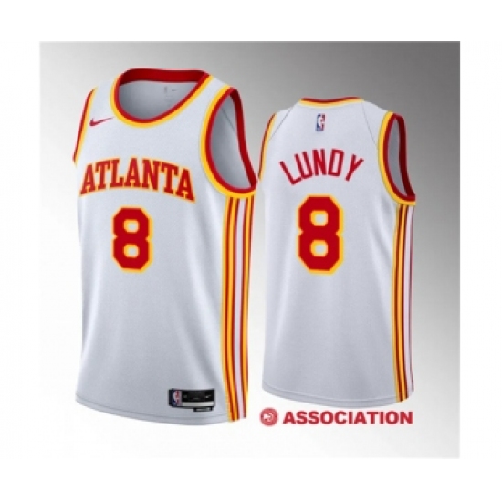 >Men's Atlanta Hawks #8 Seth Lundy White 2023 Draft Association Edition Stitched Basketball Jersey