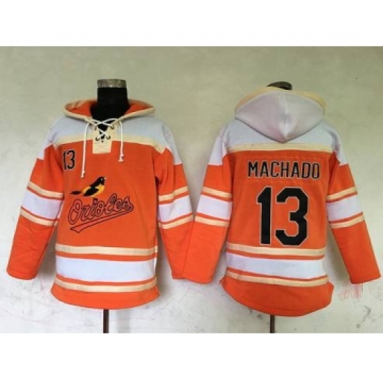 >Men's Baltimore Orioles #13 Manny Machado Orange Baseball MLB Hoodie