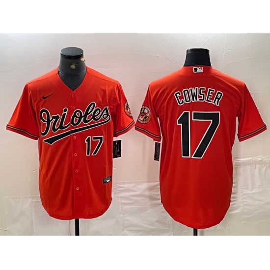 >Men's Baltimore Orioles #17 Colton Cowser Number Orange Cool Base Stitched Jersey