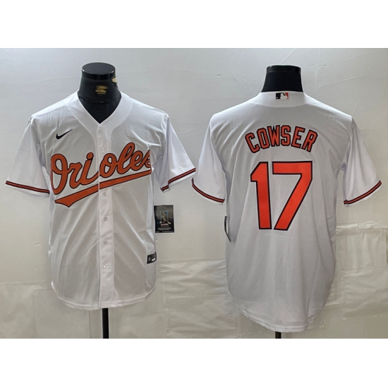 >Men's Baltimore Orioles #17 Colton Cowser White Cool Base Stitched Jersey