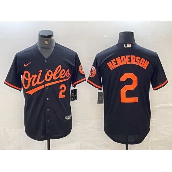 Men's Baltimore Orioles #2 Gunnar Henderson Black With Patch Cool Base Stitched Baseball Jersey