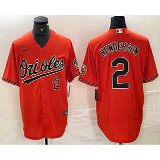 Men's Baltimore Orioles #2 Gunnar Henderson Number Orange Cool Base Stitched Jersey
