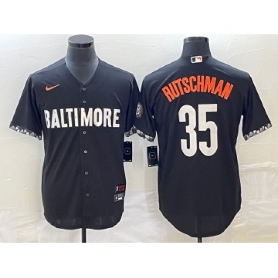 Men's Baltimore Orioles #35 Adley Rutschman Black 2023 City Connect Cool Base Stitched Jersey