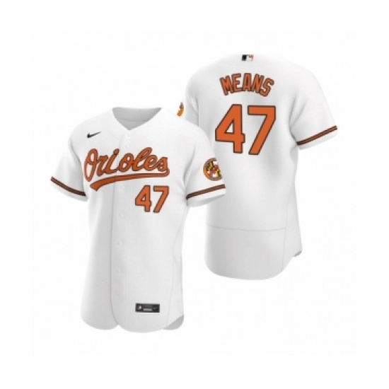 >Men's Baltimore Orioles #47 John Means Nike White Authentic 2020 Home Jersey