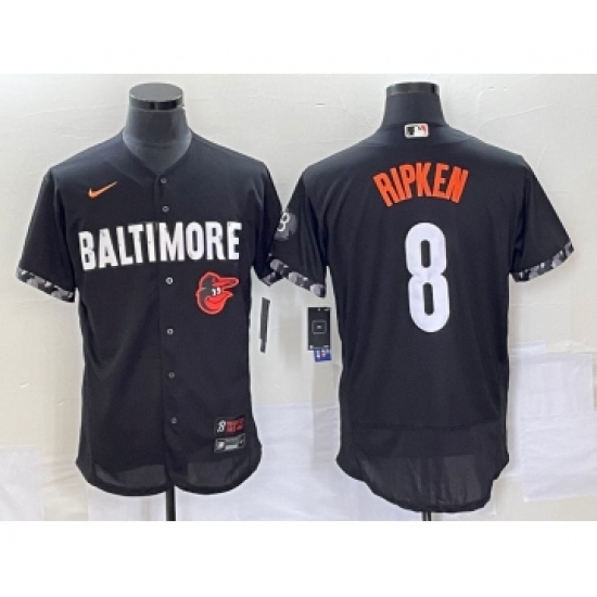 >Men's Baltimore Orioles #8 Cal Ripken Jr Black 2023 City Connect Flex Base Stitched Jersey
