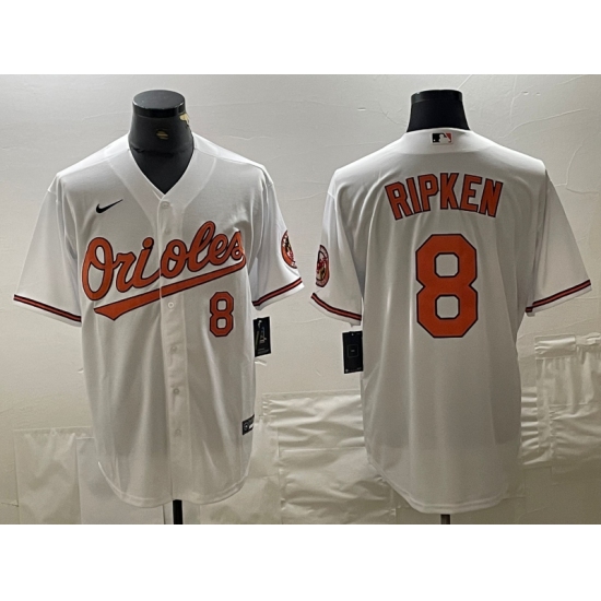 >Men's Baltimore Orioles #8 Cal Ripken Jr Number White Cool Base Stitched Jersey