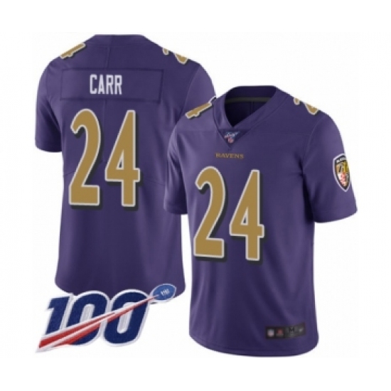 Men's Baltimore Ravens #24 Brandon Carr Limited Purple Rush Vapor Untouchable 100th Season Football Jersey