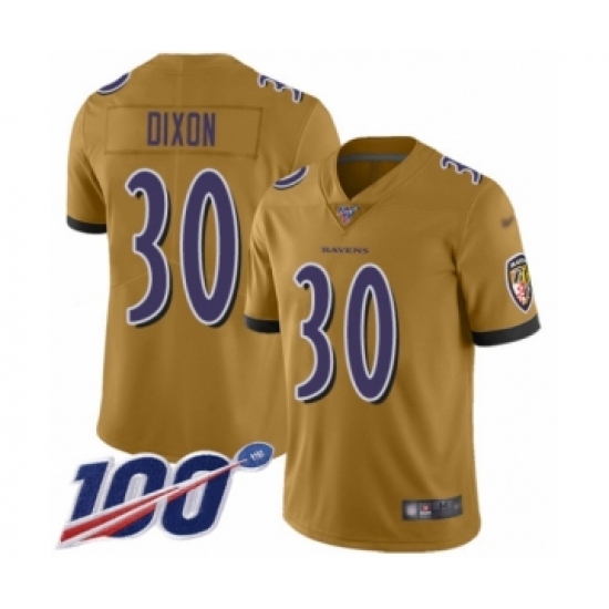 Men's Baltimore Ravens #30 Kenneth Dixon Limited Gold Inverted Legend 100th Season Football Jersey