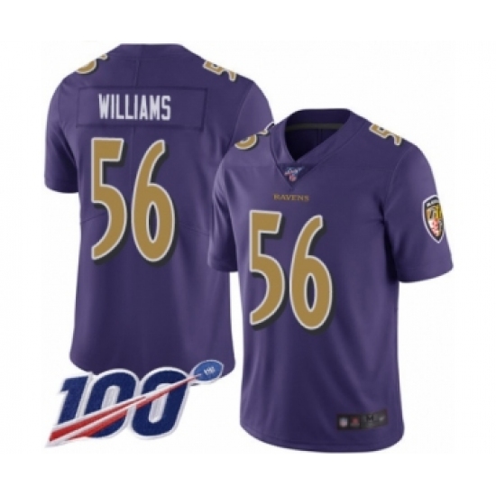 Men's Baltimore Ravens #56 Tim Williams Limited Purple Rush Vapor Untouchable 100th Season Football Jersey