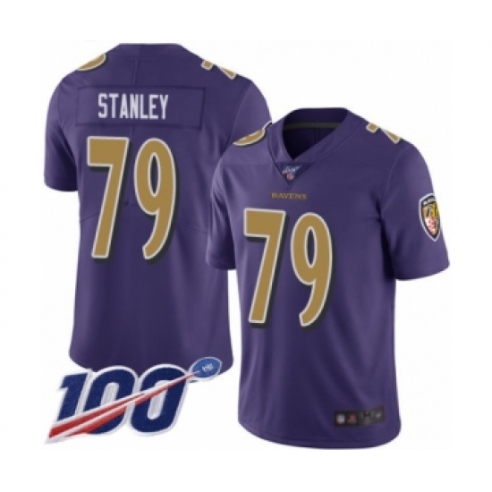 >Men's Baltimore Ravens #79 Ronnie Stanley Limited Purple Rush Vapor Untouchable 100th Season Football Jersey