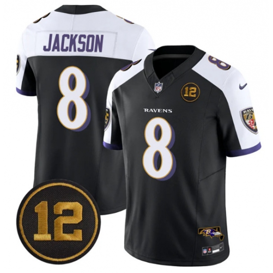 Men's Baltimore Ravens #8 Lamar Jackson Black Alternate 2025 F.U.S.E Jacoby Jones Vapor Limited Football Jersey