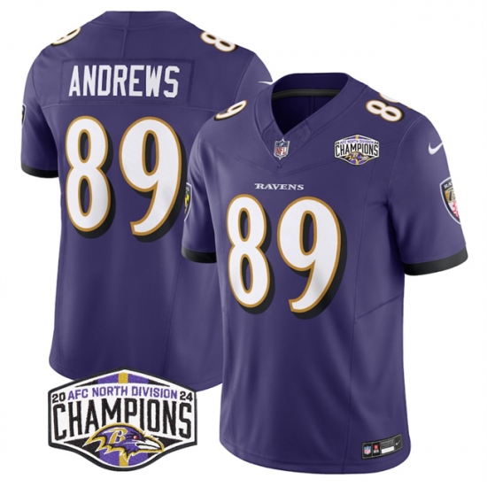 >Men's Baltimore Ravens #89 Mark Andrews Purple F.U.S.E 2024 AFC North Division Champions Vapor Limited Football Jersey