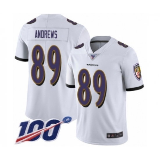 >Men's Baltimore Ravens #89 Mark Andrews White Vapor Untouchable Limited Player 100th Season Football Jersey