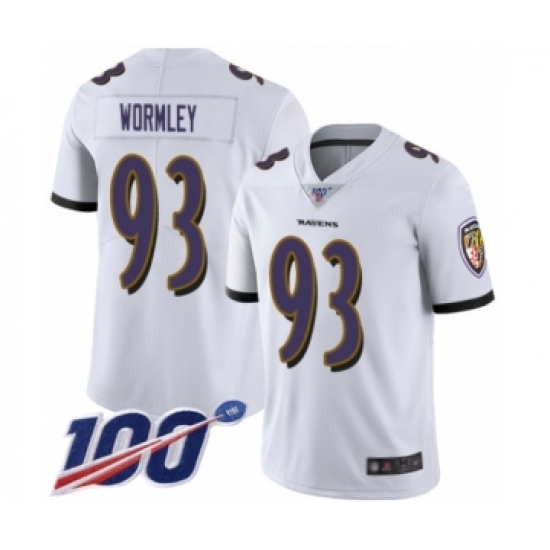 Men's Baltimore Ravens #93 Chris Wormley White Vapor Untouchable Limited Player 100th Season Football Jersey
