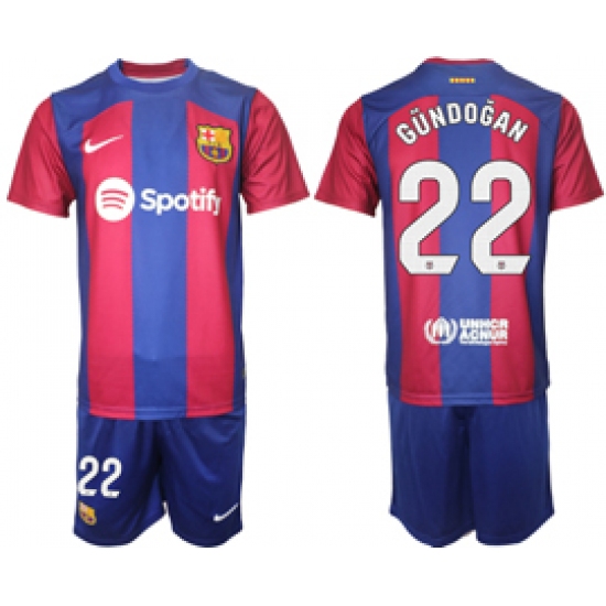 Men's Barcelona #22 Gundogan Blue Red 2023-24 Home Soccer Jersey