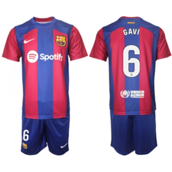 Men's Barcelona #6 Gavi Blue Red 2023-24 Home Soccer Jersey