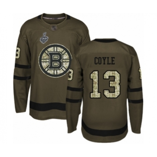>Men's Boston Bruins #13 Charlie Coyle Authentic Green Salute to Service 2019 Stanley Cup Final Bound Hockey Jersey