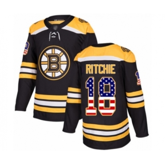 >Men's Boston Bruins #18 Brett Ritchie Authentic Black USA Flag Fashion Hockey Jersey