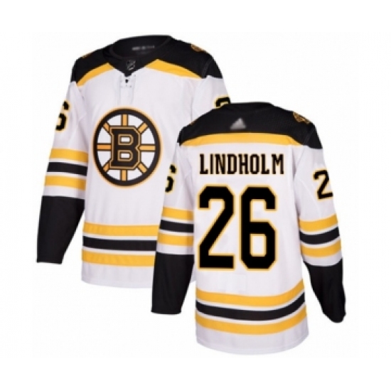 Men's Boston Bruins #26 Par Lindholm Authentic White Away Hockey Jersey