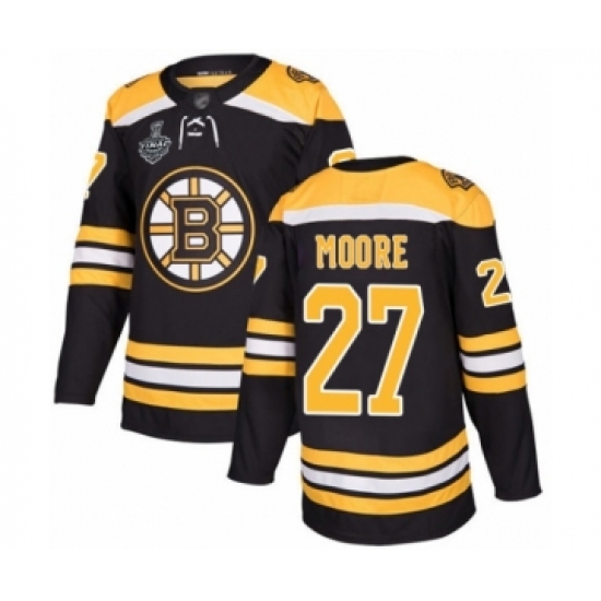 Men's Boston Bruins #27 John Moore Authentic Black Home 2019 Stanley Cup Final Bound Hockey Jersey