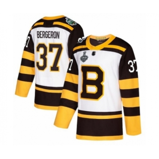 Men's Boston Bruins #37 Patrice Bergeron Authentic White Winter Classic 2019 Stanley Cup Final Bound Hockey Jersey