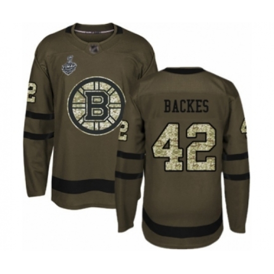 >Men's Boston Bruins #42 David Backes Authentic Green Salute to Service 2019 Stanley Cup Final Bound Hockey Jersey