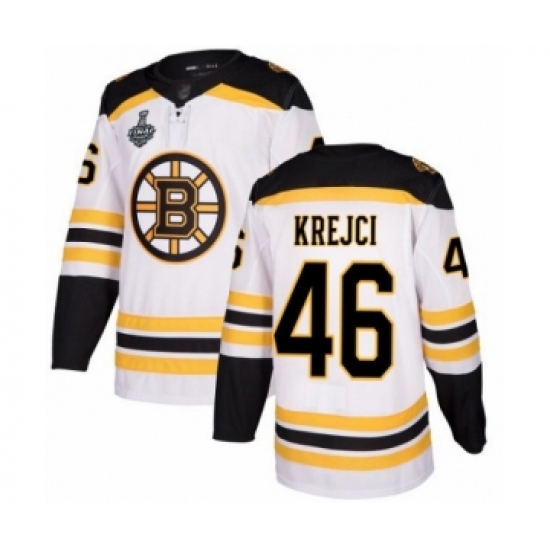 Men's Boston Bruins #46 David Krejci Authentic White Away 2019 Stanley Cup Final Bound Hockey Jersey