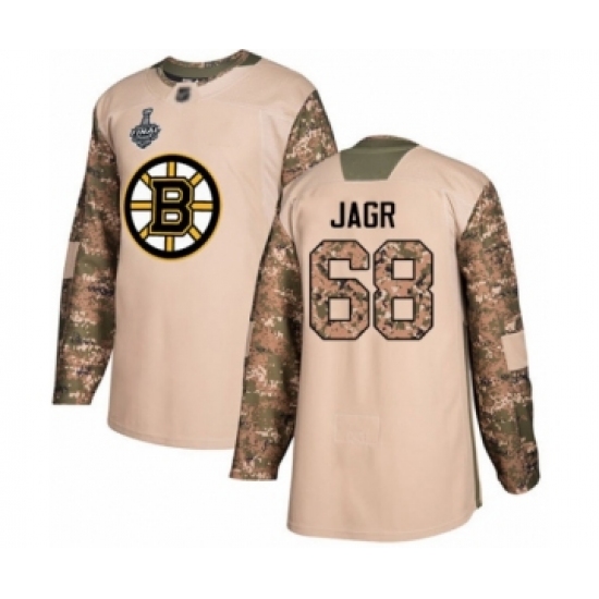 >Men's Boston Bruins #68 Jaromir Jagr Authentic Camo Veterans Day Practice 2019 Stanley Cup Final Bound Hockey Jersey