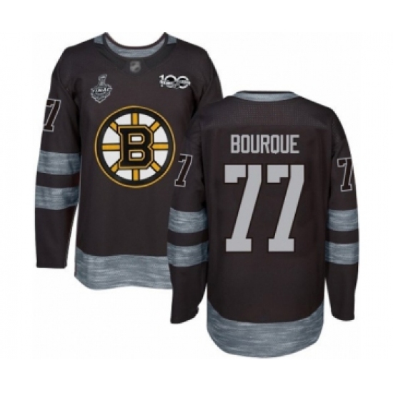 >Men's Boston Bruins #77 Ray Bourque Authentic Black 1917-2017 100th Anniversary 2019 Stanley Cup Final Bound Hockey Jersey