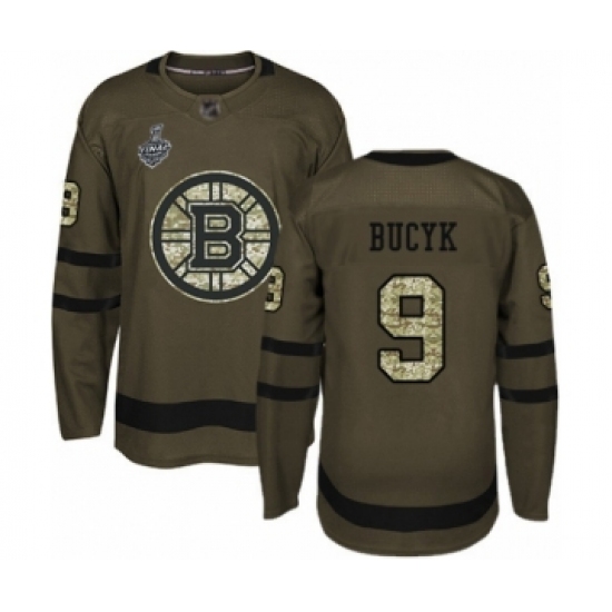 Men's Boston Bruins #9 Johnny Bucyk Authentic Green Salute to Service 2019 Stanley Cup Final Bound Hockey Jersey
