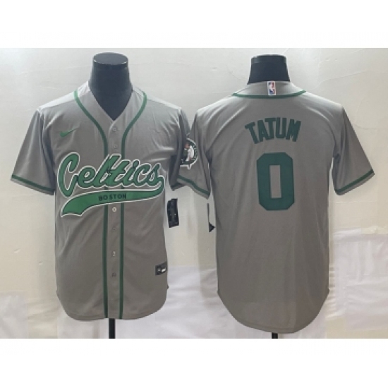 >Men's Boston Celtics #0 Jayson Tatum Grey With Patch Stitched Baseball Jersey