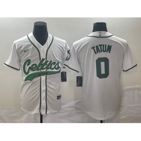 >Men's Boston Celtics #0 Jayson Tatum White With Patch Stitched Baseball Jersey