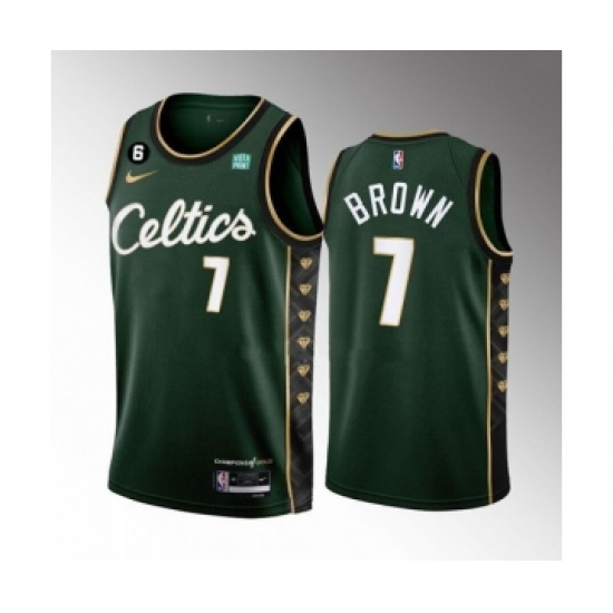 Men's Boston Celtics #7 Jaylen Brown Green 2022-23 City Edition No.6 Patch Stitched Basketball Jersey