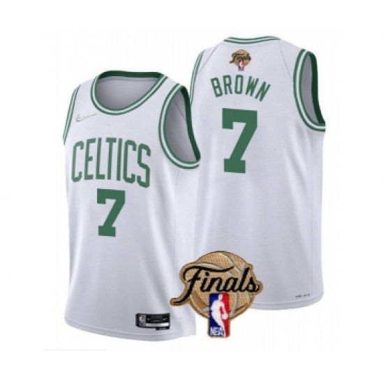 Men's Boston Celtics #7 Jaylen Brown White 2022 Finals Stitched Jersey