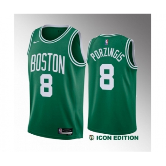 Men's Boston Celtics #8 Kristaps Porzingis Green 2023 Draft Icon Edition Stitched Basketball Jersey