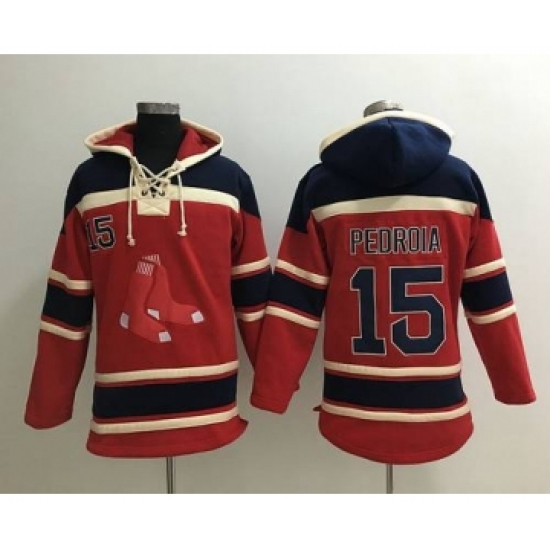 >Men's Boston Red Sox #15 Dustin Pedroia Red Baseball MLB Hoodie