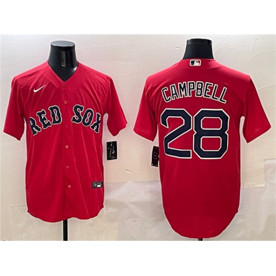 >Men's Boston Red Sox #28 Kristian Campbell Red Cool Base Stitched Baseball Jersey
