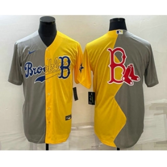 Men's Boston Red Sox Big Logo Grey Yellow Split Cool Base Stitched Jersey