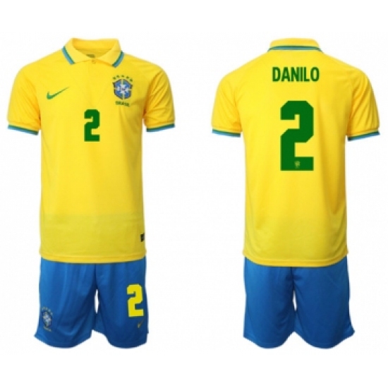 Men's Brazil #2 Danilo Yellow Home Soccer Jersey Suit