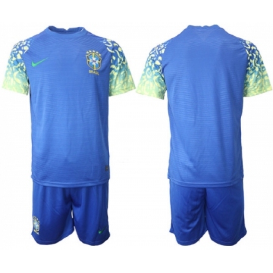 Men's Brazil Blank Blue Away Soccer Jersey Suit