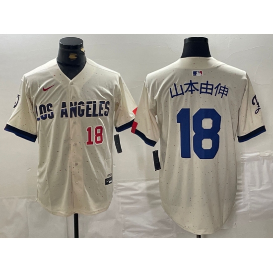 Men's Brooklyn Dodgers #18 山本由伸 Cream Stitched Baseball Jerseys