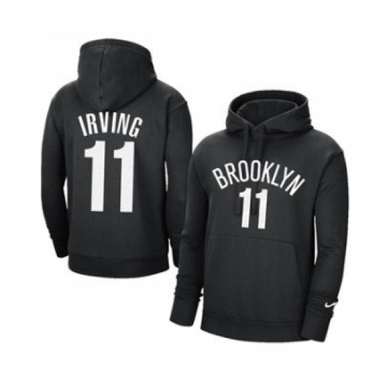 >Men's Brooklyn Nets #11 Kyrie Irving 2021 Black Pullover Basketball Hoodie 2