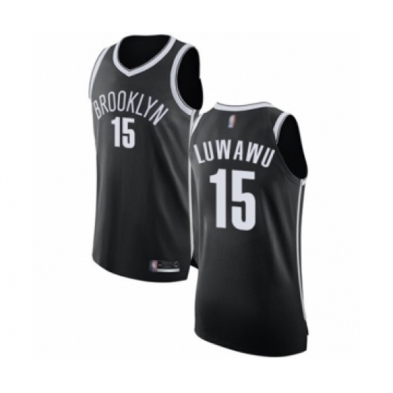 >Men's Brooklyn Nets #15 Timothe Luwawu Authentic Black Basketball Jersey - Icon Edition