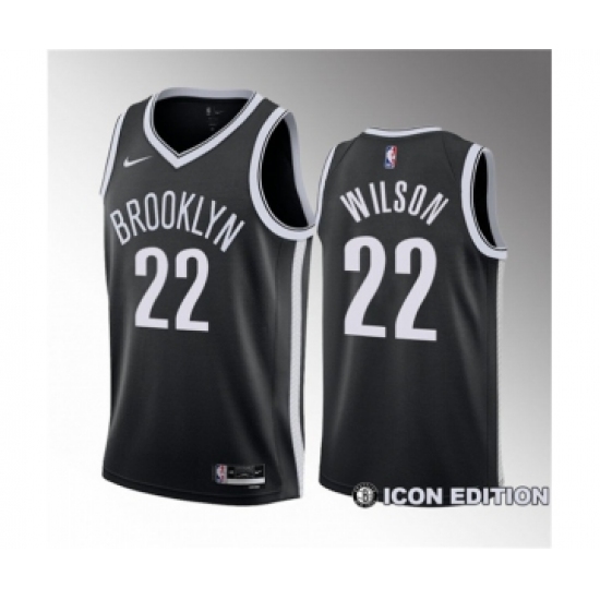 Men's Brooklyn Nets #22 Jalen Wilson Black 2023 Draft Icon Edition Stitched Basketball Jersey