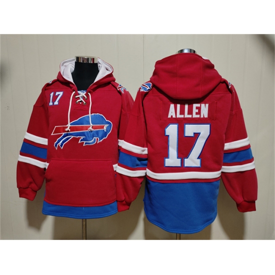 >Men's Buffalo Bills #17 Josh Allen Red Ageless Must-Have Lace-Up Pullover Hoodie